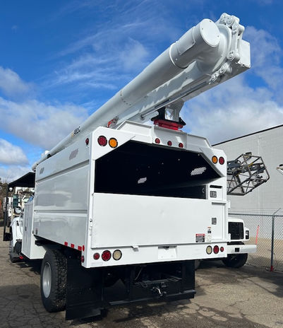 Nice southern truck with very moderate paint damage or rust. Cleaned, paint touch up, truck and aerial serviced. Features 11R22.5 tires, A/C, pintle hitch and tow package, 2 outriggers, and 11’ chip box.