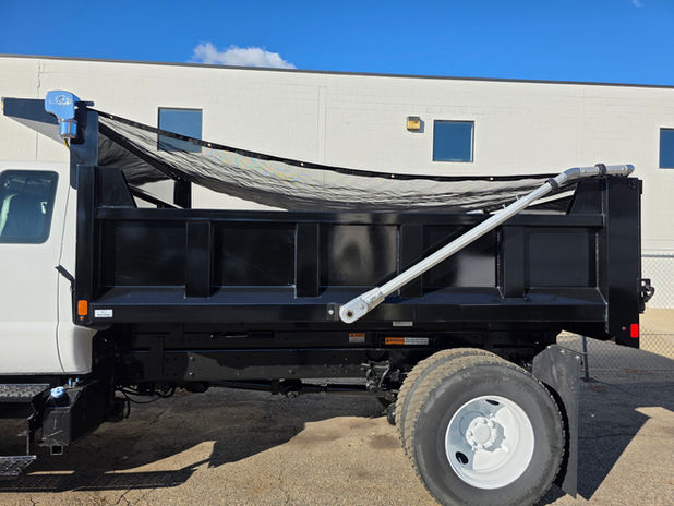 Brand New S&H 12ft dump body, featuring LED light package, duel hoist, 7 gage steel, head protector, electric tarp cover. Serviced, DOT tested, road driven, and ready to work. Truck has AC and radio, pintle hitch/plate, air and electric trailer hook ups, and 11R22.5 tires.