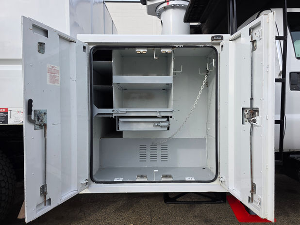 Call Jacob regarding pictures and availability of this under CDL Forestry Bucket Truck. Features 4x2 drive train, 11R22.5 tires, AC, radio, pintle hitch and towing package, 11ft chipper body with storage compartments, 2 outriggers, PTO hydraulics.